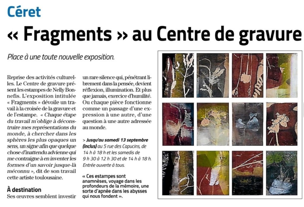 http://nellybonnefis.fr : EXPOSITION NELLY BONNEFIS “FRAGMENTS” – ESTAMPES DU 6 AU 14 SEPTEMBRE 2025